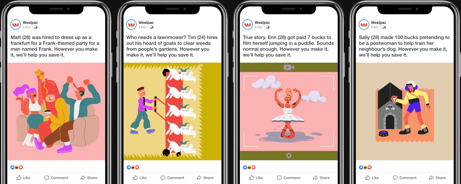 From ushering pugs around town to being paid to play with a cat, the series positions Westpac as the bank of choice for those working in the gig economy and challenges the tired stereotype of young people being irresponsible savers.